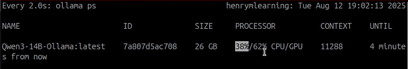 Notice the key difference: llama.cpp allows us to set a much larger context window (32,768 tokens) compared to Ollama’s 11,288 tokens on the same hardware.