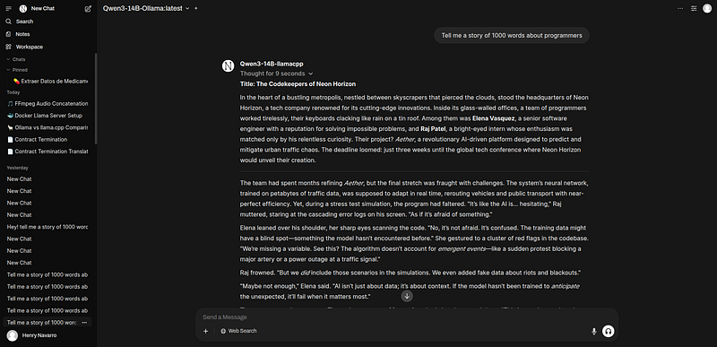 First, let’s test basic inference performance with a simple prompt: Test Prompt: “Write a 1000-word story about programmers”